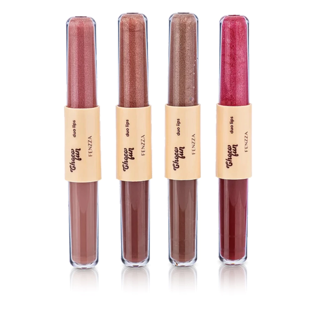 O DUO DE BATOM E GLOSS CHOCO FUN, é prático para usar no dia a dia. O batom entrega uma super cobertura e o gloss é hidratante, pois possui vitamina E e Óleo de Rosa Mosqueta.