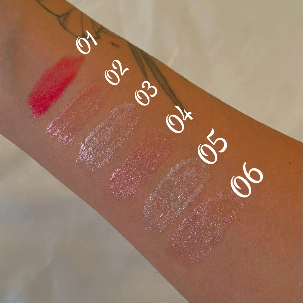 6 cores disponíveis de glosses brilhantes